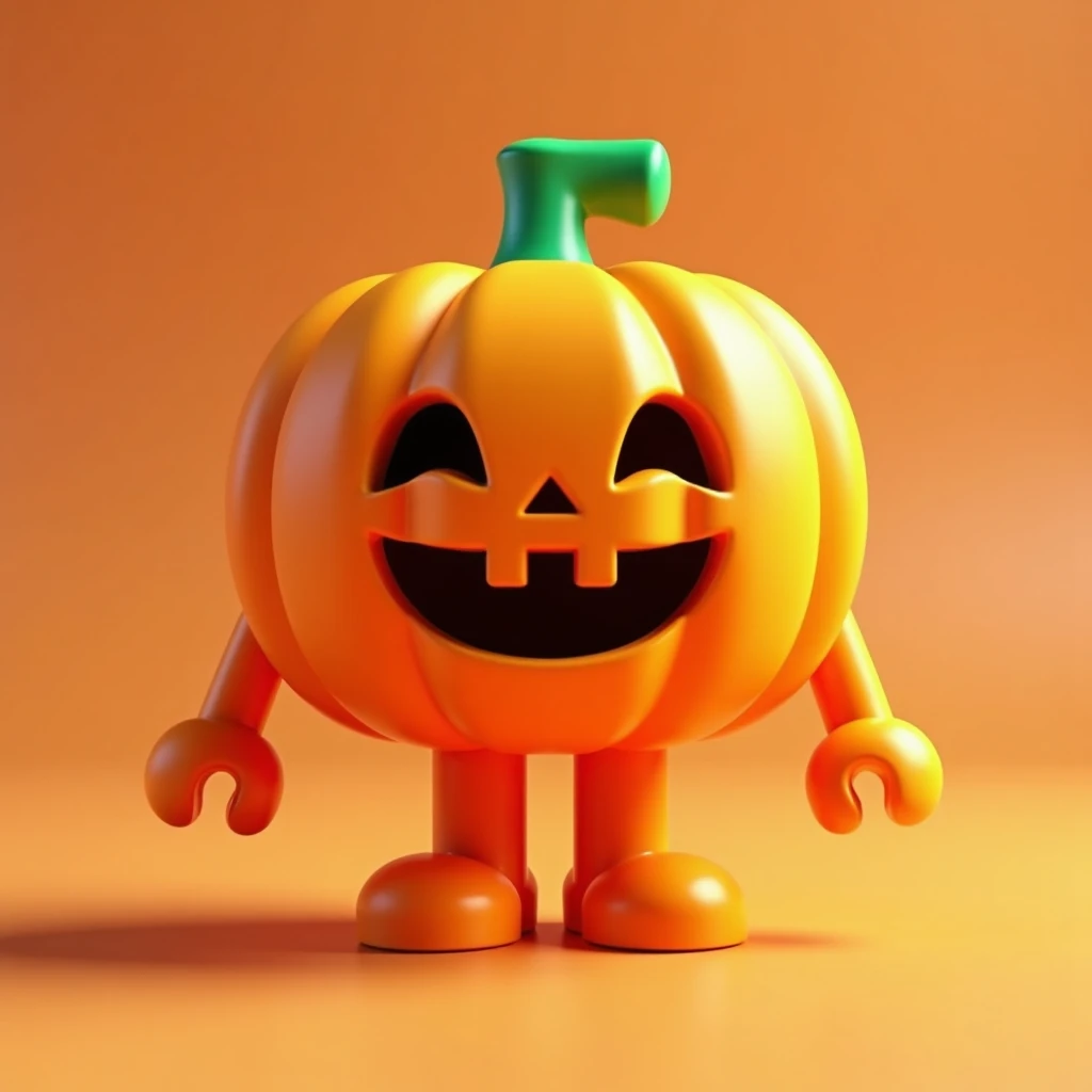 lego style jack-o-lantern with arms and legs
