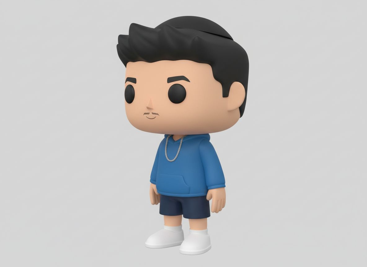 תיצור בובת פופ עם הפרצוף של הבן אדם ושהוא יהיה עם כיפה שחורה על הראש, שרשרת כסף, פוטר כחול מכנס קצר