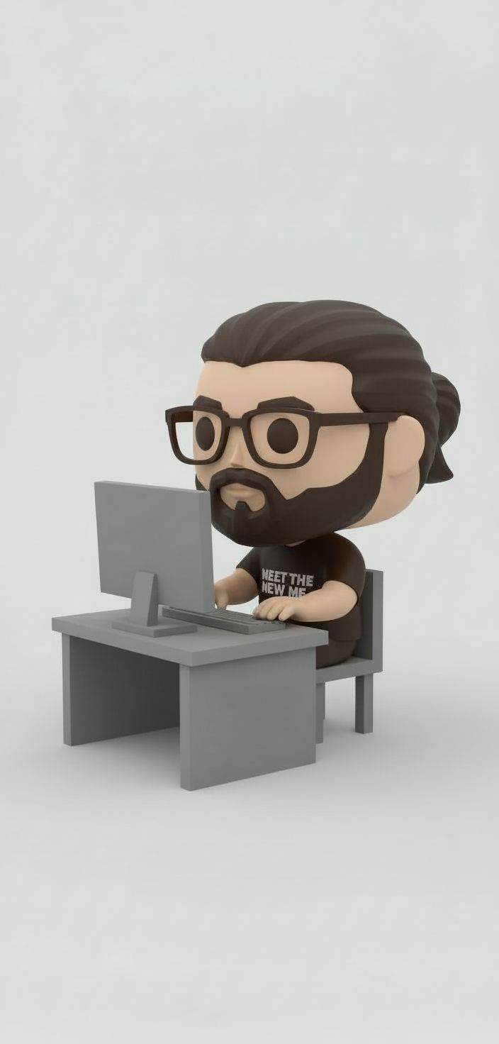 A funco pop like working on his PC - Remove logo behind the monitor, and these mesagge like form ups