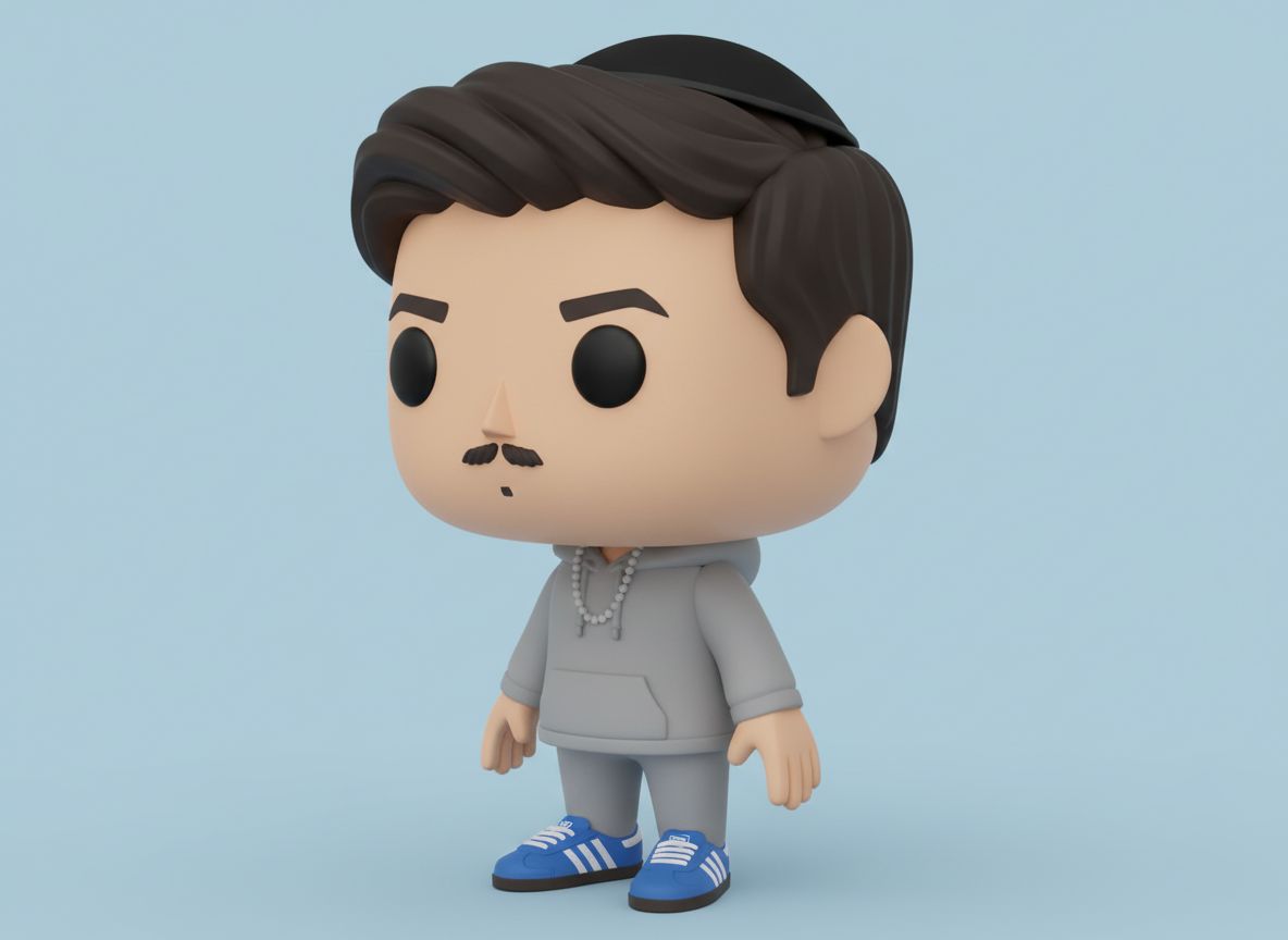 תעצב בובת פופ עם פוטר, שרשרת כסף, כיפה שחורה על הראש, קצת שפם, עם קצת פוני שמסודר הצידה, ונעלי סמבה