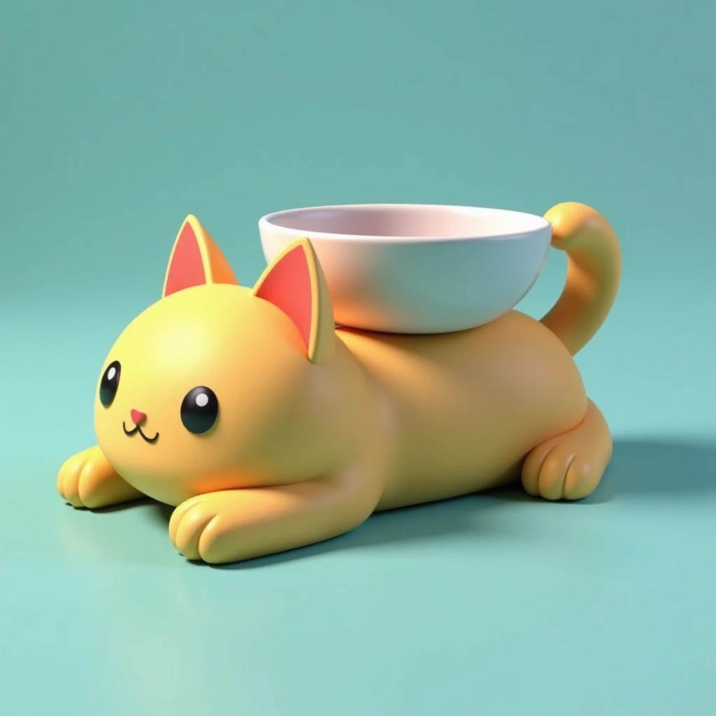 can you create me a cat that is laying down with a bowl on its back