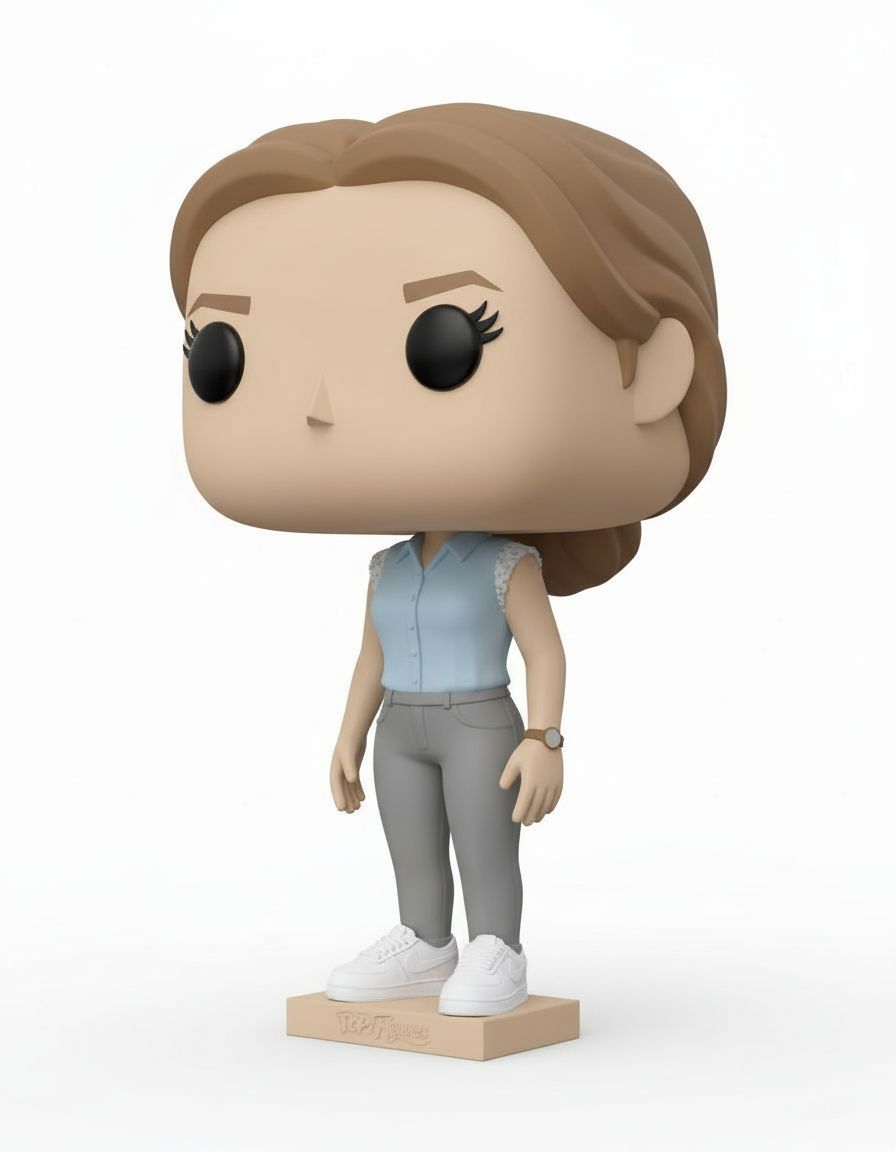 Funko Pop vinyl figure of a woman with light brown hair tied back, wearing a light blue sleeveless b