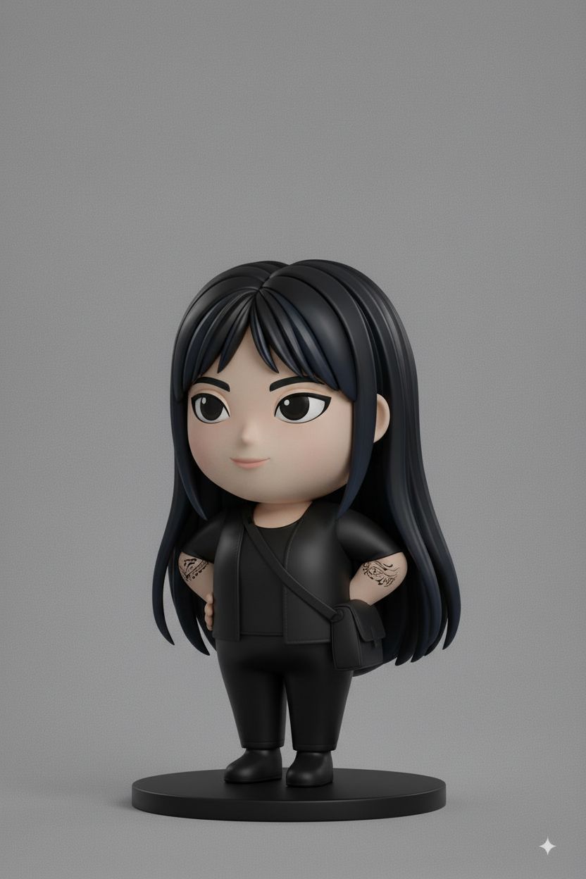 Generate a 3D model of a collectible vinyl Art Toy based on the reference image. Chibi style with a