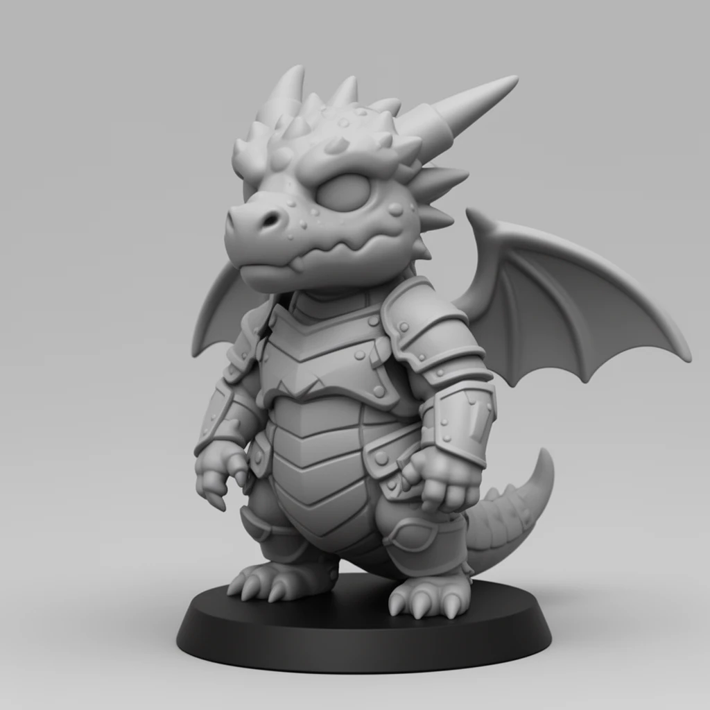 Create a heavy chibi dragon with a normal size head, with armor and small wings