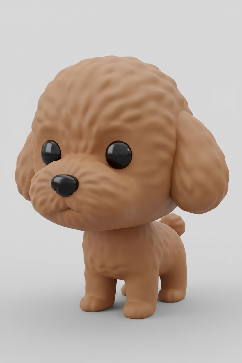 Create a cartoon model of the dog in the image. Make it cute.