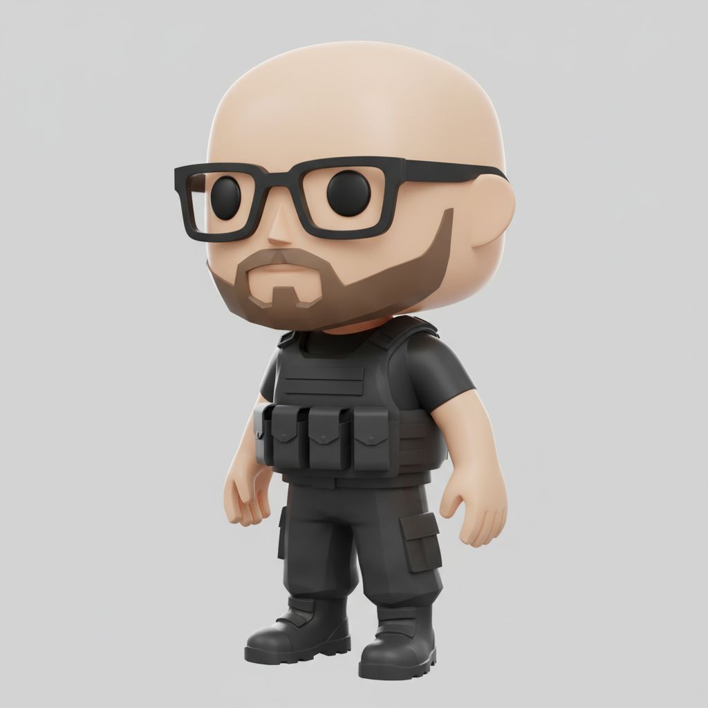 homme adulte – crâne chauve (sans cheveux sur le dessus) – barbe courte – lunettes rectangulaires no