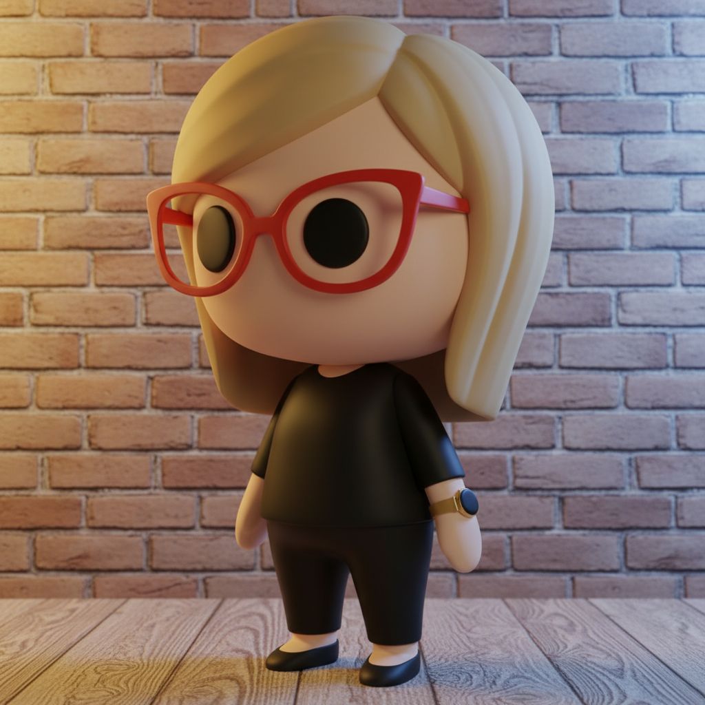 A high-detail 3D render of a Funko Pop vinyl figure, full body, standing upright against a textured