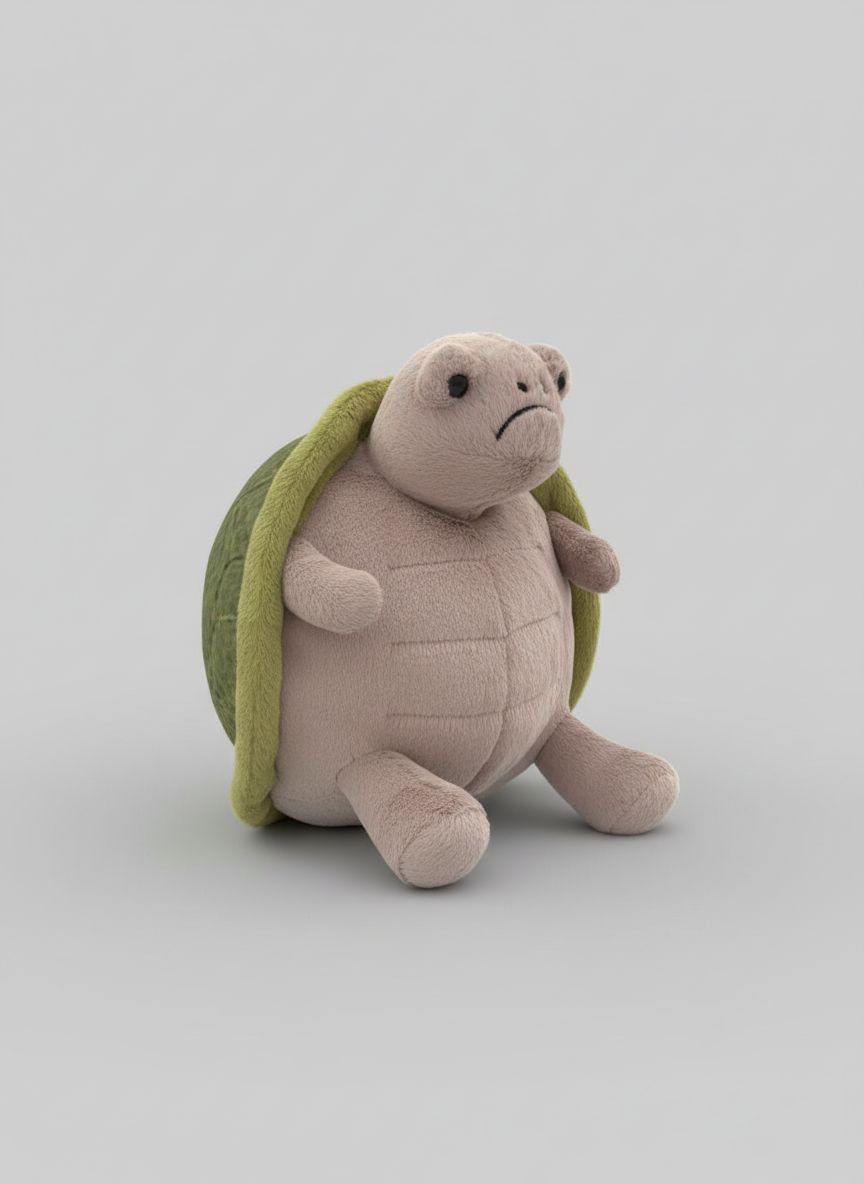 I want a grumpy looking tortouise based on the image provided for 3d printing. She should be sitting