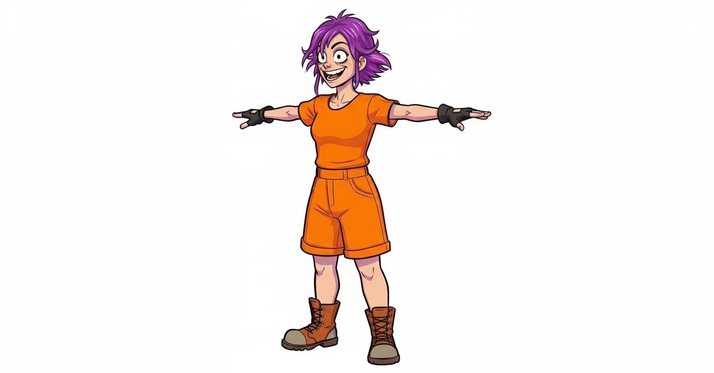 A high-quality 3D stylized character model of 'Crazy Roxy' based on the attached orthographic refere