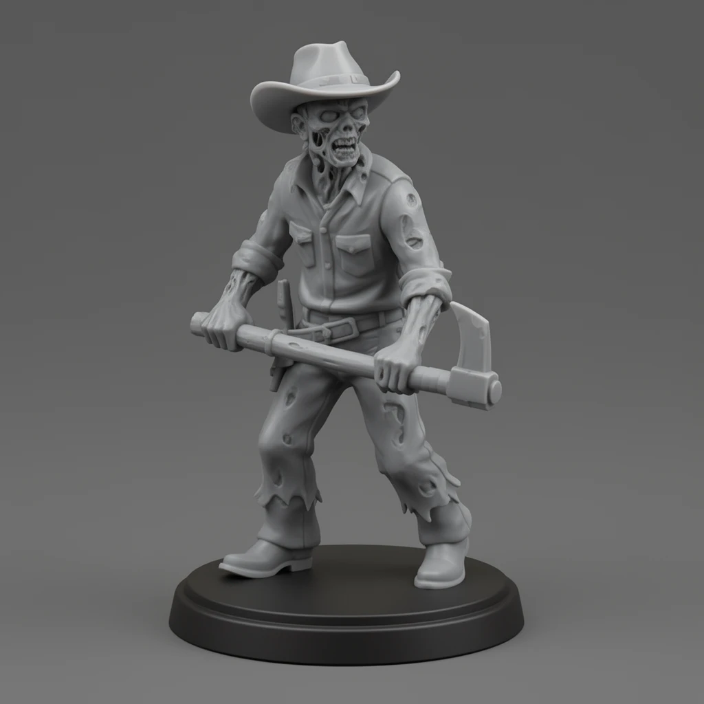 cowboy zombie with pickaxe with 25mm miniature base
