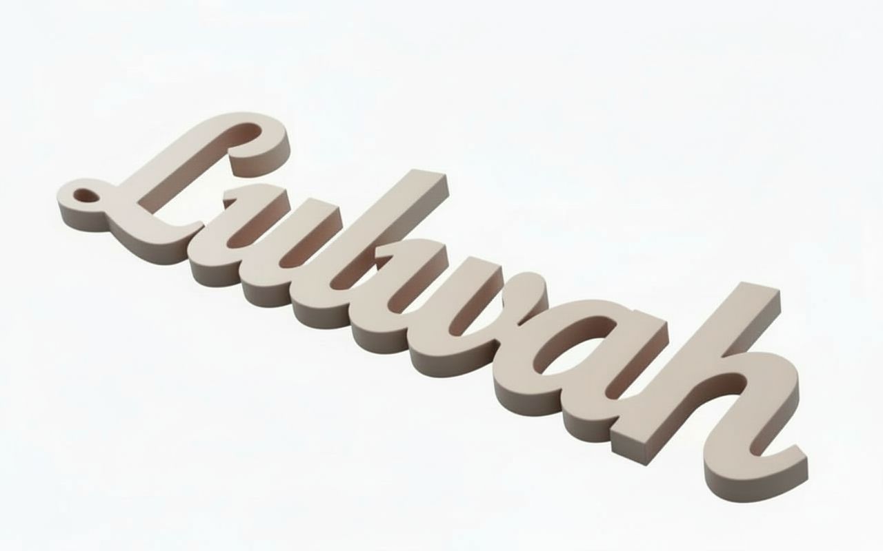 the same design for Lulwah Name - the hole for the keychain ring - the letter L stuck with letter