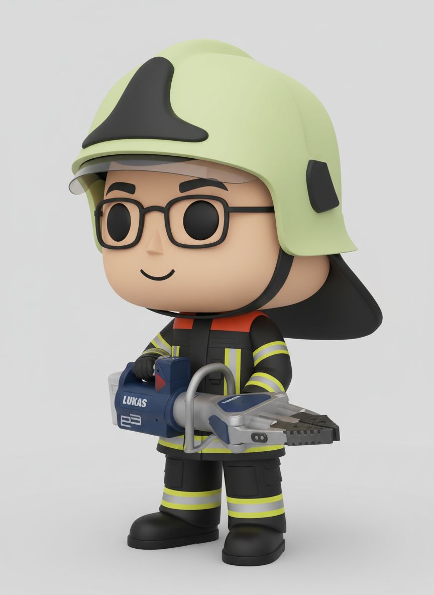 3D Figur, fireworker, Cartoon-Stil, detailliert take the picture as detailed as possible