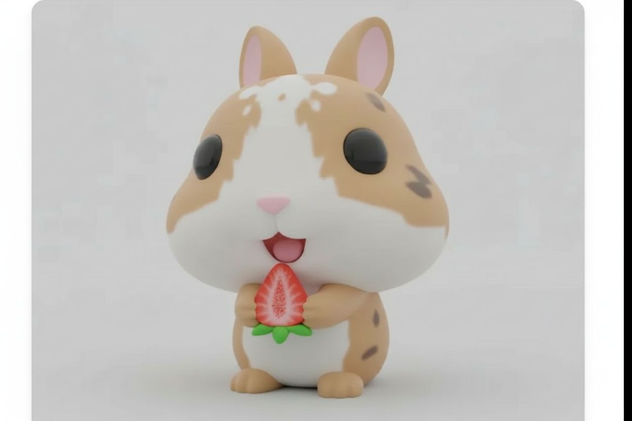créé un modele 3D de mon lapin qui mange une fraise en reference à la photo et rajoute des textures